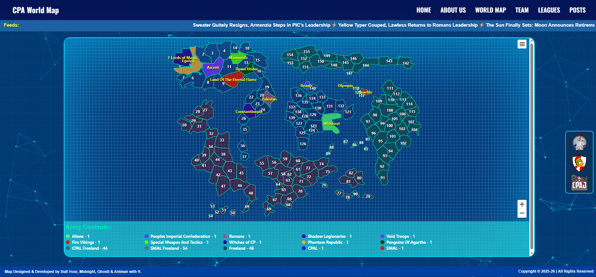 In conjunction with the Small Medium Army League and the collaboration of various professional individuals such as Antman and Bull Hour, the CPAL World Map officially opens at 12 am EST on Monday, November 3, 2025. Scheduling begins as of the release of this post.