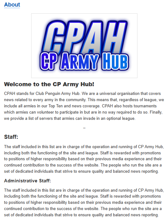Regardless of whatever differences I and any individual may have had in the past, I am here on a sole mission to attempt to fill the void that a lot of armies feel with the previous league. I am not here to seek power or fame, I honestly couldn’t care less, it was only after I came back from retirement this year to have some fun that I realized what the state of the community is. I am open to working with the CPA org on a safer and more secure path for all armies’ future and development. At the end of the day, every single group in the community only wishes the best for Club Penguin Armies; the only difference is how people want to achieve that.