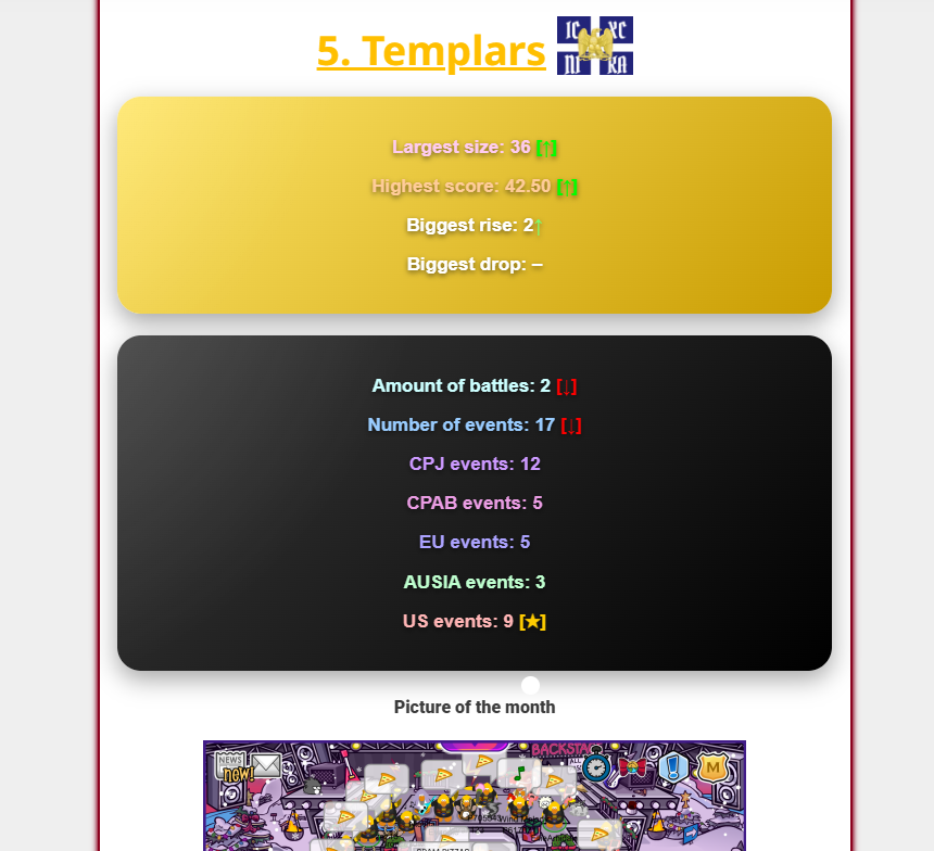 Besides improving the quality and design of the rankings and statistics, we have been more firm on including all armies that bypass the 5+ penguins criteria in their revivals. You might wonder why some armies are not present while they are present in a different Top Ten, and it is important to let the community know that armies that do not max above 5 in their revivals are not counted in the Top Tens for CPAL.