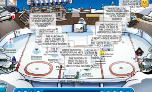 [Additionally; One of the Army of Club Penguin’s events, and two of the Templars events in Club Penguin Journey were deemed invalid due to them taking place in a party and/or usually crowded room, such as in these instances, the Iceberg and the Town. These voided events do not change the original rankings. Other examples to avoid would be the Welcome Room.]
