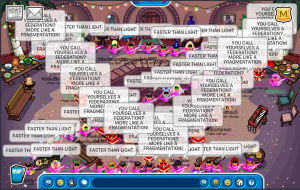[Additionally; Two of the Templars’ events in Club Penguin Journey, and one of the Army of Club Penguin’s likewise, were deemed invalid due to them taking place in a party and/or usually crowded room, such as in these instances, the Town. These voided events do not change the original rankings. Other examples to avoid would be the Town and Welcome Room.]