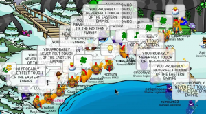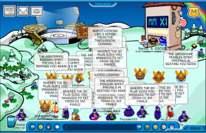 [Additionally; One of the Water Vikings’ events in Club Penguin Journey was deemed invalid due to them taking place in a party and/or usually crowded room, such as Town. Other examples to avoid would be the Welcome Room, Iceberg, and Cave]