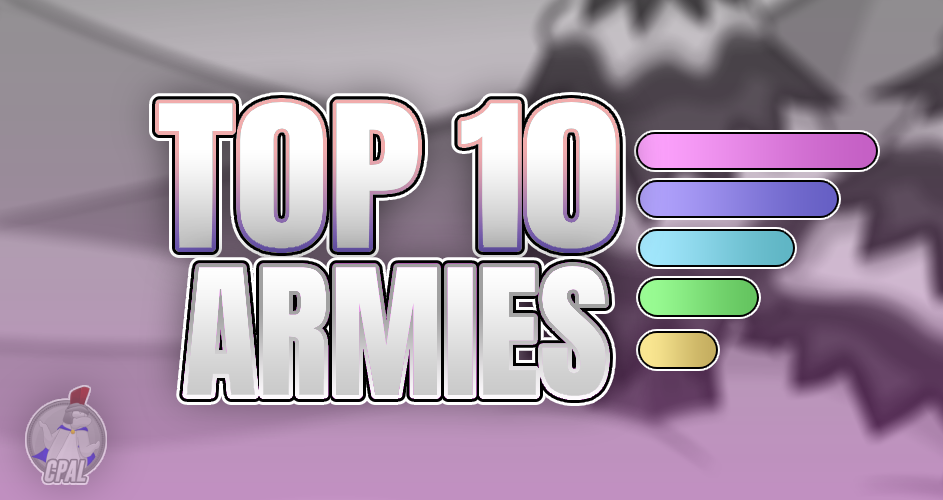 [Note: As mentioned before, CPPS events have less strict counting rules in CPAL, and have been since the start of the league; however, rules are more strict on armies using CPPS for unfair or unbalanced rankings. Please read the CPPS section on the About page. Furthermore, the registration/revival threshold of 5 max needed to be considered an army and enter the Top Tens, hence the potential differences in other Top Tens.]